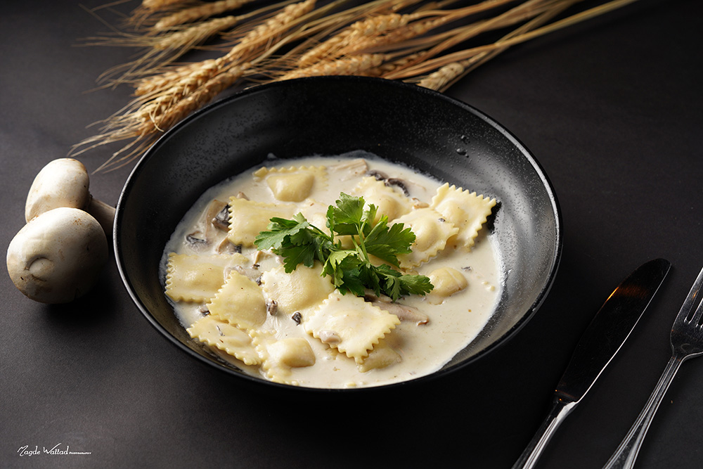 رافيولي أجبان بصلصه الكريم والفطر