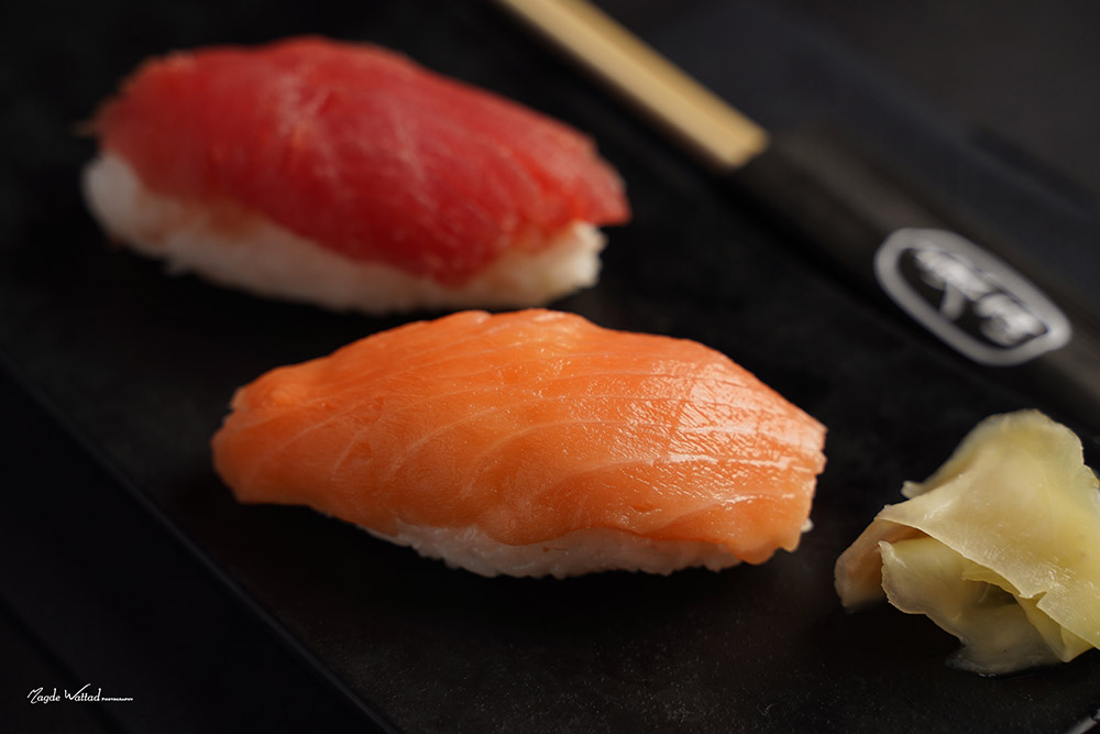 قطعتين نيجيري مغطى بالسلمون/ التونة الحمراء